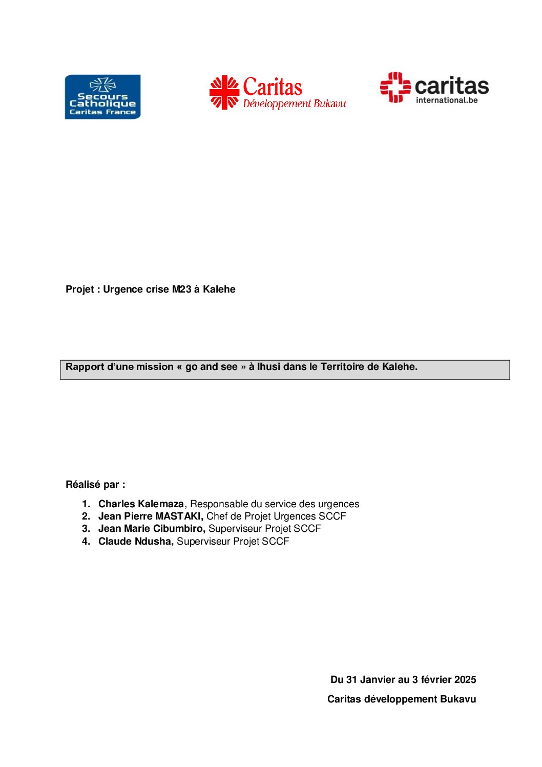 Rapport d’une mission « go and see » à Ihusi dans le Territoire de Kalehe.